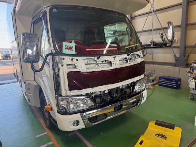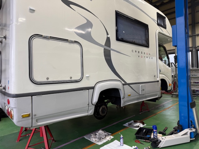 さて本日はその中メンテナンス作業はキャンピングカーのカスタムペイント&足回りのリフレッシュ作
